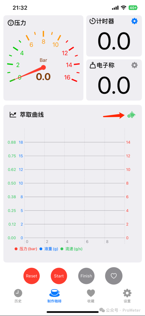 1.使用重置压力,如Flair 58 在萃取完成后再压拉杆至重置曲线压力,清空曲线,进入下一次的萃取曲线录制